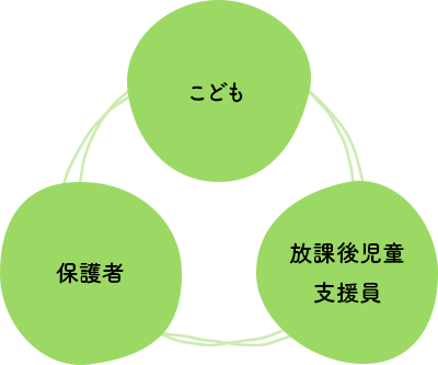 当学童の名称である「トライアングル」には、こどもと保護者と放課後児童支援員(スタッフ)とつながりながらこどもの成長の支援をしたいという想いが込められています。